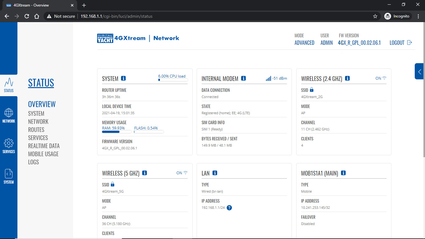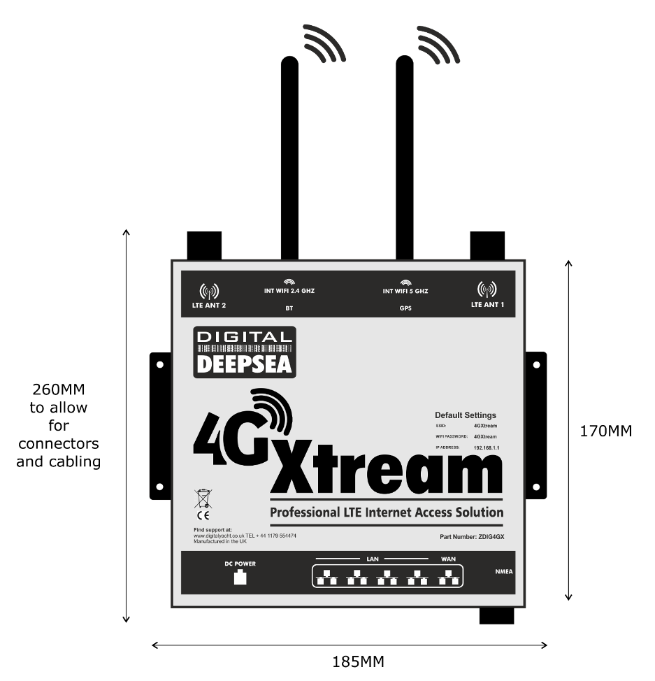 4G Xtream is ons nieuwste, hoogwaardige product voor LTE 4G Internettoegang aan boord, voorzien van een NMEA 2000-interface. Het wordt geleverd als compleet pakket met twee externe antennes, bevestigingsmateriaal voor op het dek en bekabeling. Alternatieve antennebevestigingen zijn als optie verkrijgbaar.