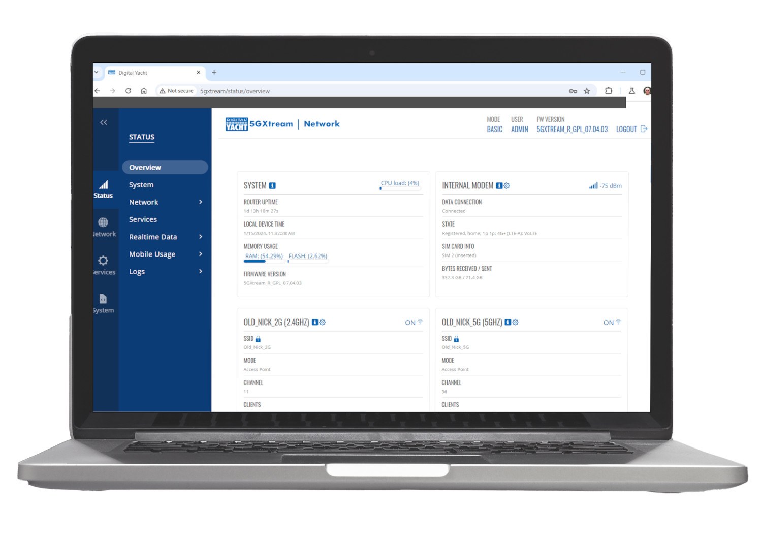 Voor gevorderde gebruikers biedt 5G Xtream mogelijkheden voor gebruikersbeheer, VPN’s, blacklists en IoT-toepassingen. NMEA 2000 data kan eveneens worden gekoppeld via de LANLink van Digital Yacht. De geïntegreerde GPS maakt SMS-rapportage van de scheepspositie mogelijk of zelfs geofence-/driftbewaking wanneer het schip voor anker ligt of in de haven ligt.