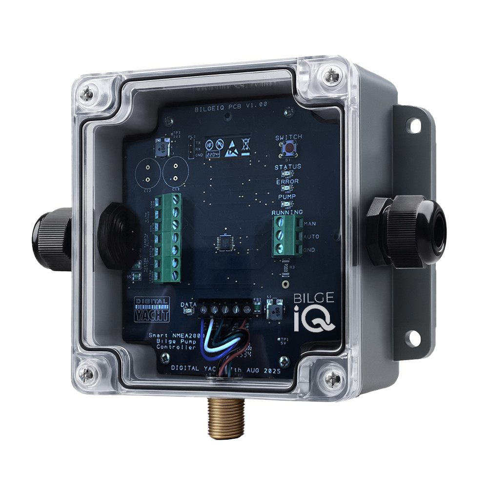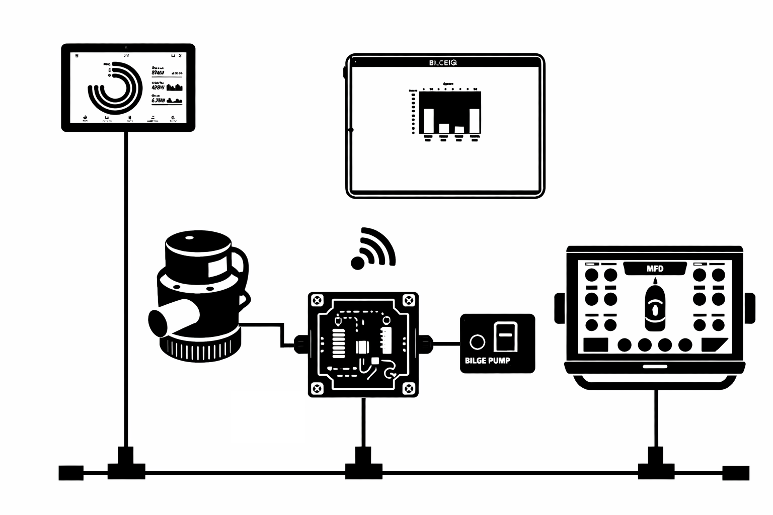 “Monitor en bedien je lenspomp met Bilge iQ. Een slimme Wi-Fi en NMEA 2000 lenspomp monitor die real-time status, alerts, pompgeschiedenis en remote access levert.”