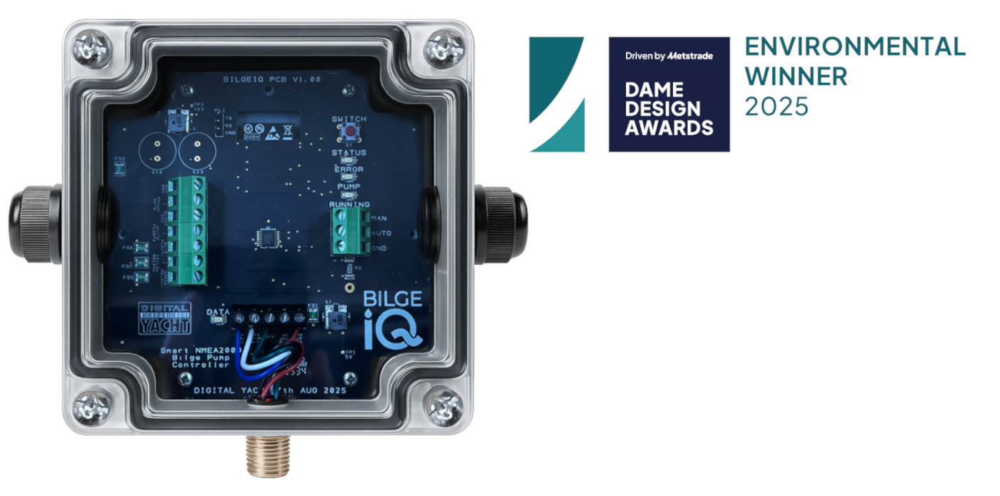 Winnaar van de DAME Environmental Award (de meest prestigieuze prijs in de maritieme industrie) is Bilge iQ een slimme lenspomp monitor die een standaard lenspomp verandert in een volledig verbonden, intelligent veiligheidssysteem. Door NMEA 2000 en WiFi integratie, maakt Bilge iQ het mogelijk om bilgepomp-prestaties in real time te monitoren, te bedienen en te analyseren. Zo krijg je ongekende zichtbaarheid op één van de meest kritieke systemen aan boord.