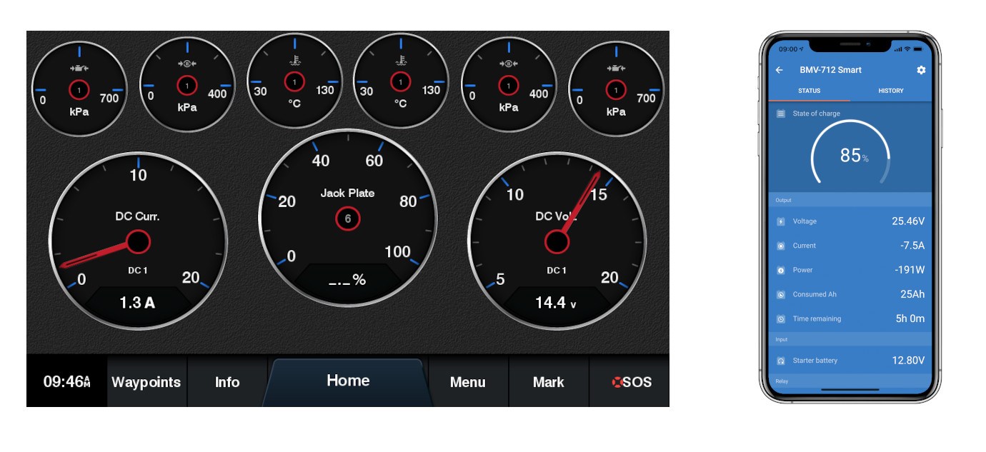 “De BM100 is een compleet systeem dat bestaat uit SmartShunt en veKonvert NMEA 2000-interface. Met deze oplossing wordt uw multifunctionele display een geavanceerd batterij- en energiebeheersysteem.”