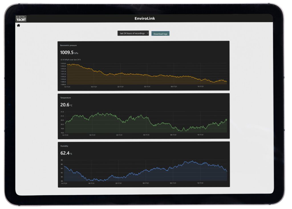 EnviroLink is een slimme NMEA 2000 barometer en omgevingssensor met high-precision sensoren voor luchtdruk, temperatuur en luchtvochtigheid. EnviroLink is ontworpen voor zeilers die nauwkeurig en real-time inzicht willen in de lokale weersomstandigheden, direct aan boord.