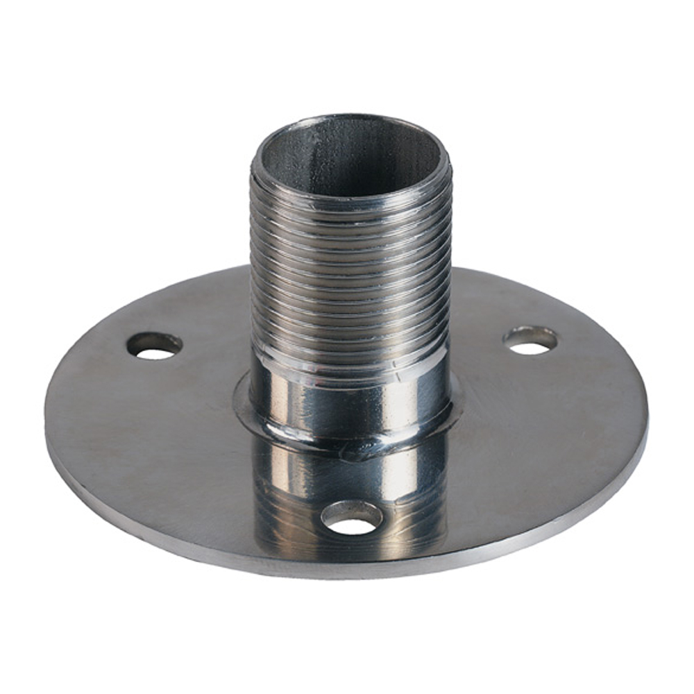 Laag profiel Antennevoet van roestvrij staal voor montage op een horizontaal dek of oppervlak. Bevestiging met hoge flens en standaard 1″x14 TPI-schroefdraad.