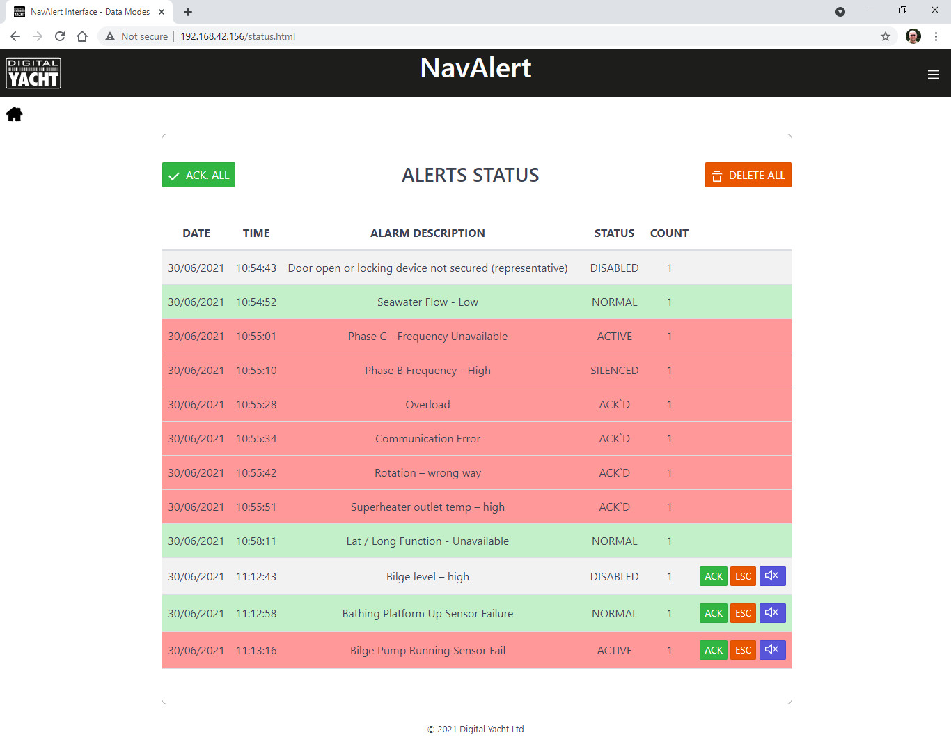 NavAlert is een NMEA 2000 monitoring en alarmsysteem. Het maakt het mogelijk om een alarm in te stellen op elk willekeurig parameter dat beschikbaar is op het NMEA 2000-netwerk van het schip. Dat kan navigatie-informatie zijn zoals diepte, koers of snelheid, elektrische gegevens zoals spanning, maar ook motor-/generatorparameters zoals temperatuur, druk, tankniveaus, brandstofverbruik, enzovoort.