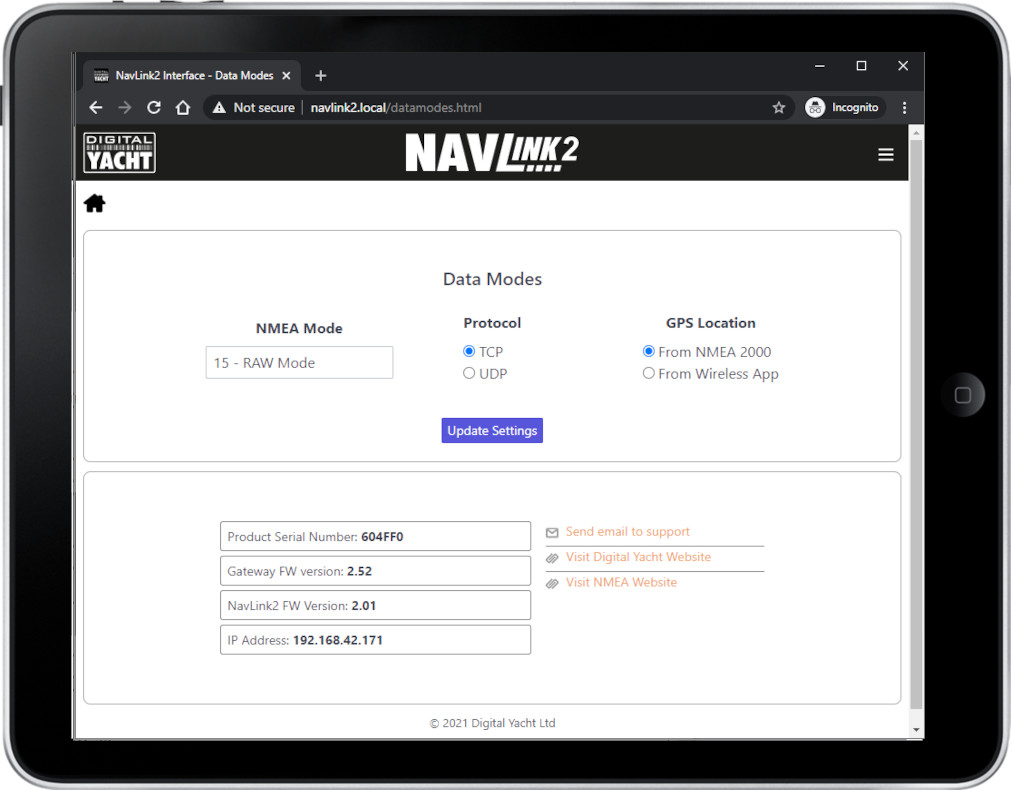 NavLink2 maakt een eigen, met wachtwoord beveiligd lokaal wifinetwerk aan, waarmee alle NMEA 2000-data kan worden doorgestuurd naar populaire iOS- en Android-apps zoals Navionics, AquaMap, iSailor, Weather4D, SailGrib, iNavX, TimeZero en meer.
