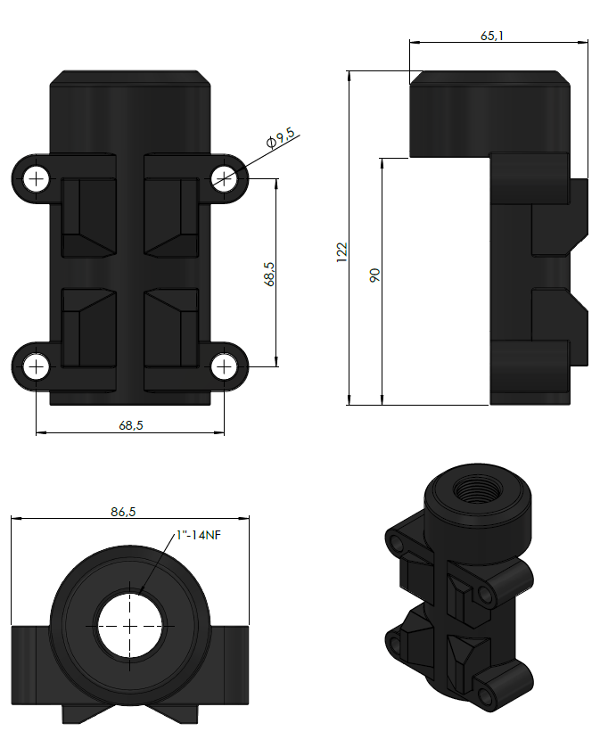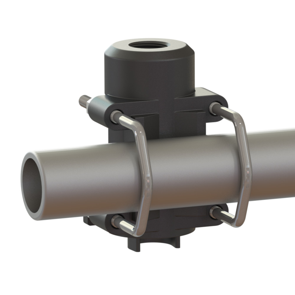 Robuuste mast- of rail antennehouder voor de montage van al onze antennes met een 1”-14 schroefdraadvoet op verticale of horizontale masten. De houder is vervaardigd uit gegoten aluminium met een PU-poedercoating.